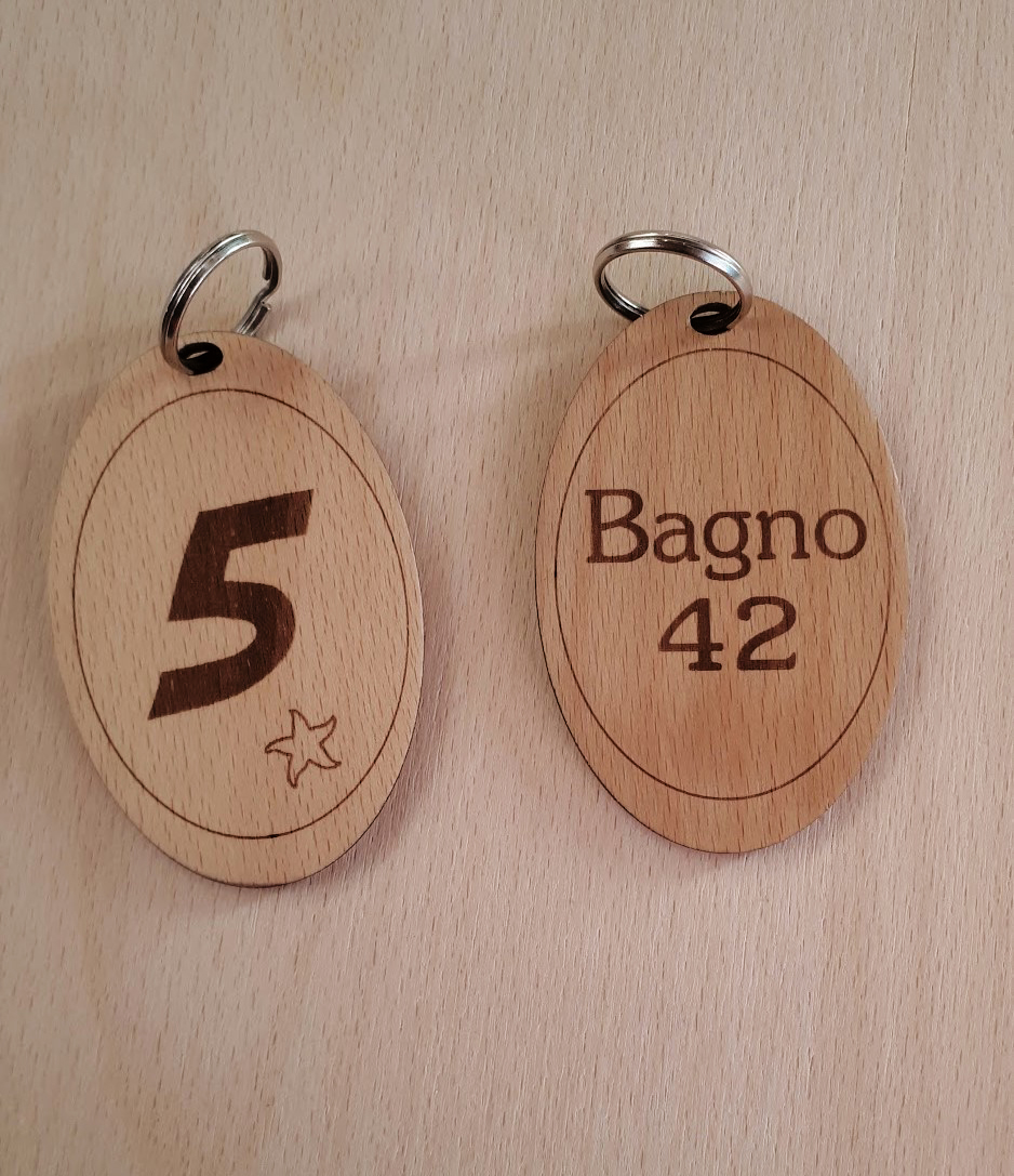 Portachiavi PORTACHIAVI IN LEGNO PERSONALIZZATI Testo dei portachiavi Bagno 44, legno faggio incisione laser.